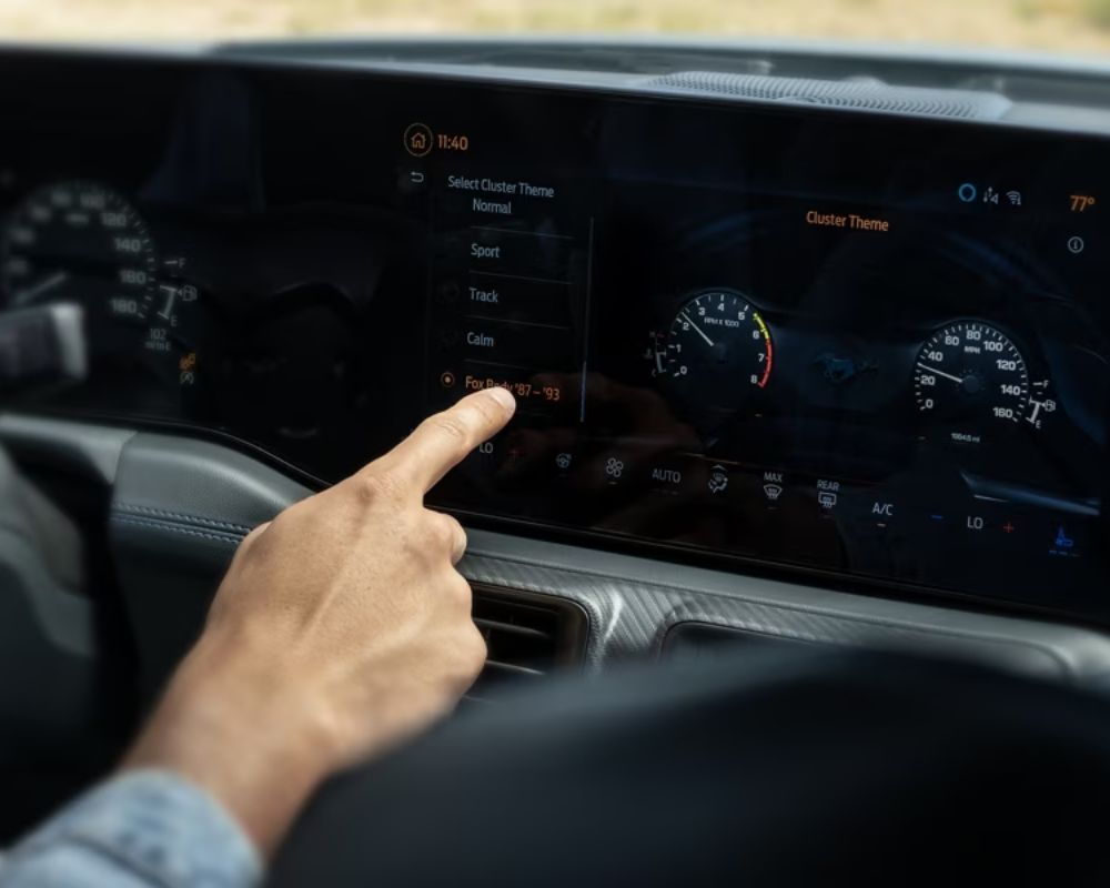 Elevating the driving experience, this Ford sports car incorporates cutting-edge infotainment and technology features. At the heart of the center console sits a 13.2-inch infotainment screen using Ford's Sync 4 software. This advanced system offers seamless smartphone integration, supporting Apple CarPlay and Android Auto compatibility for effortless connectivity.